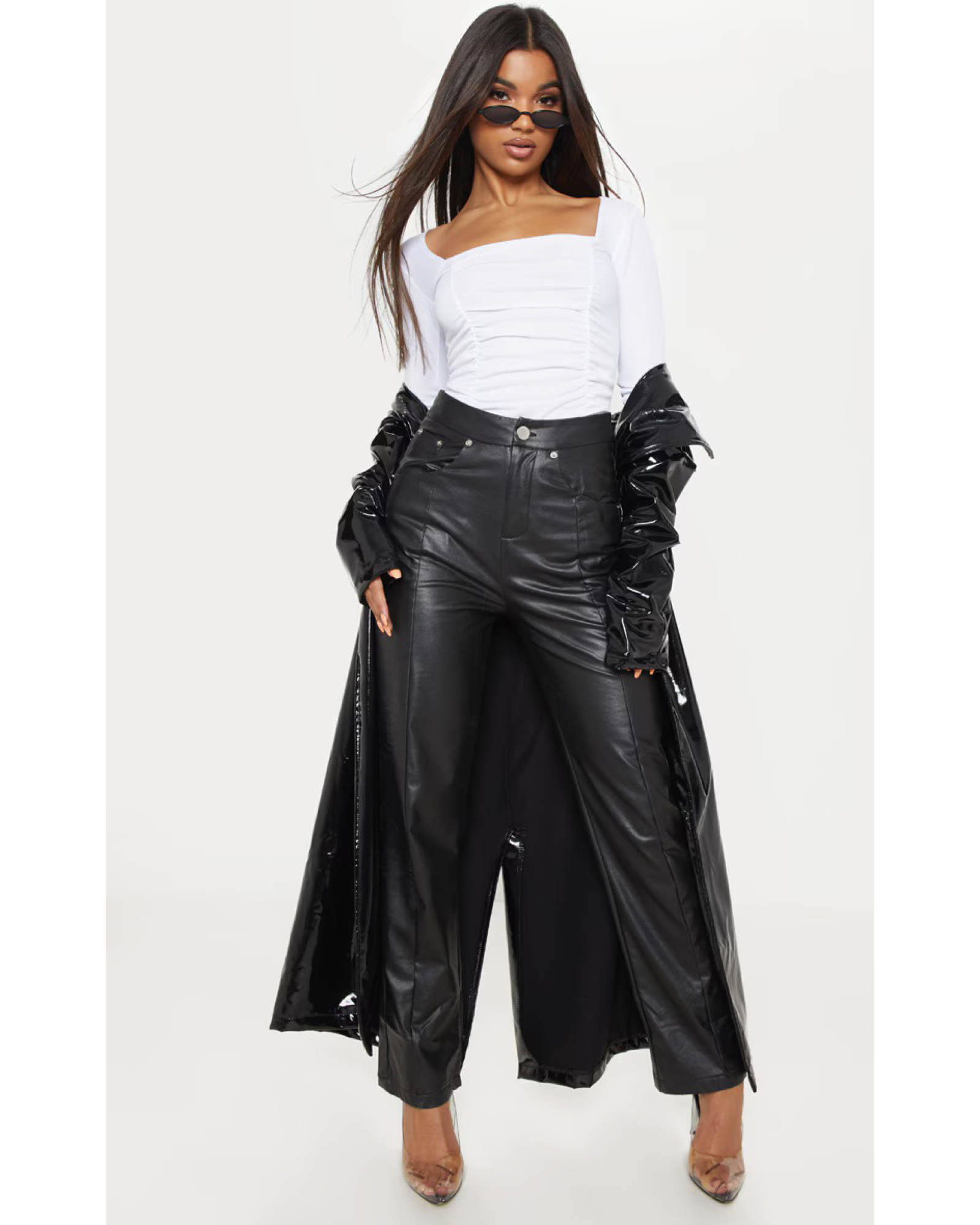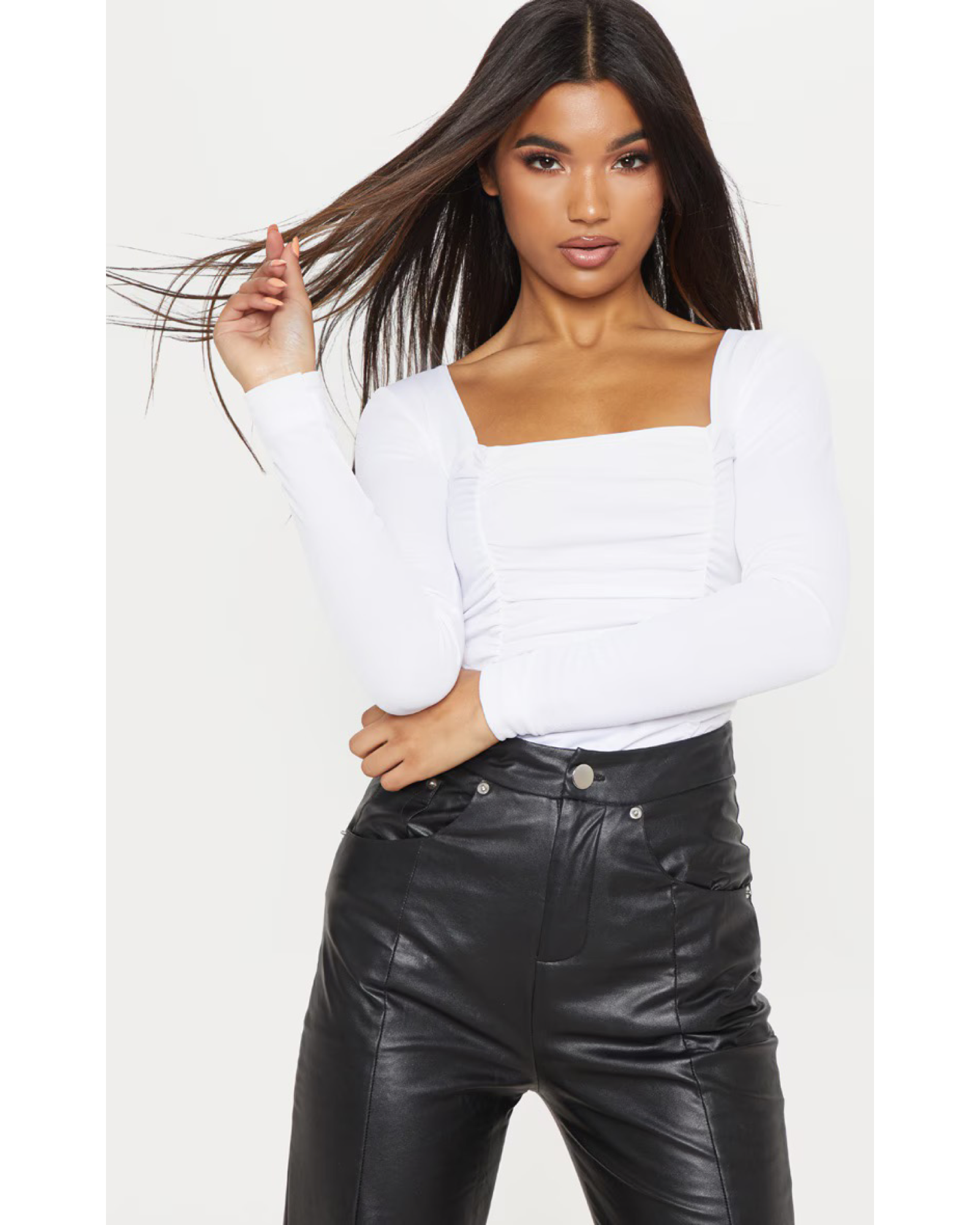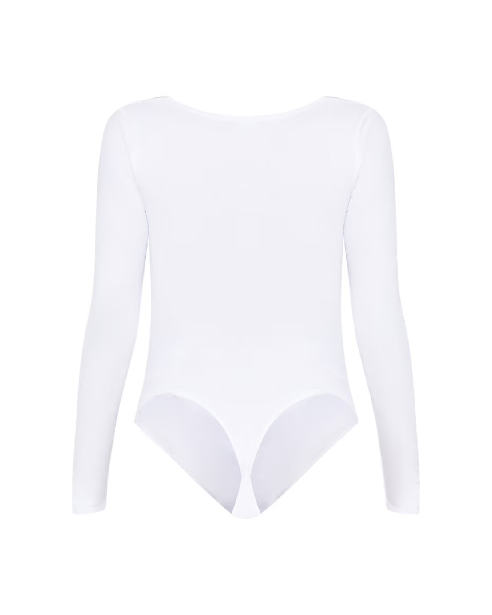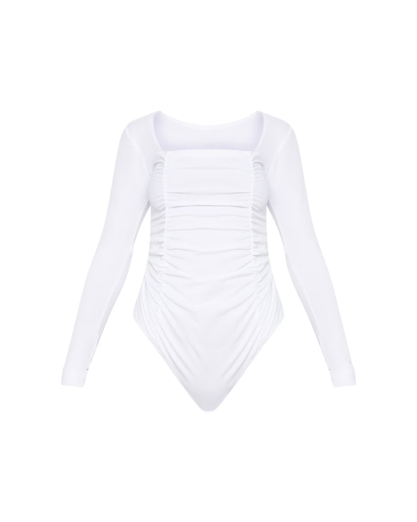 Model: CMB0796 White Ruched Logn sleeve bodysuit