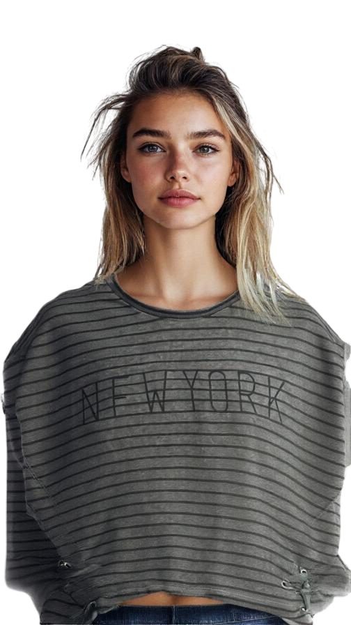Vzor: hladký, pruhovaný vzor, nápis New York, ozdobné šnurovanie