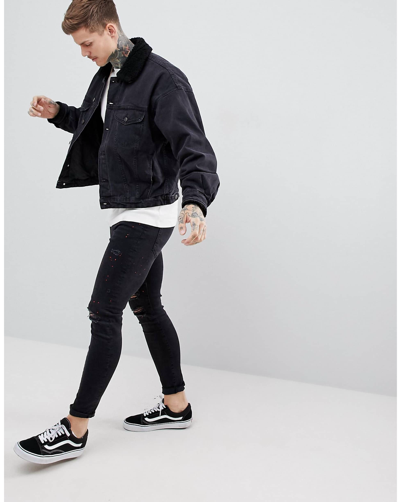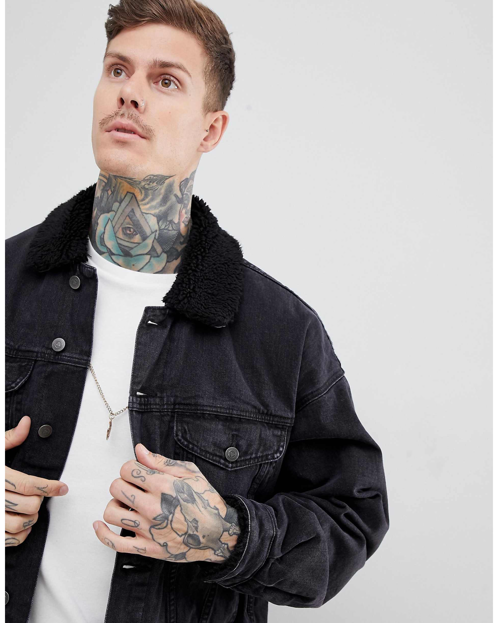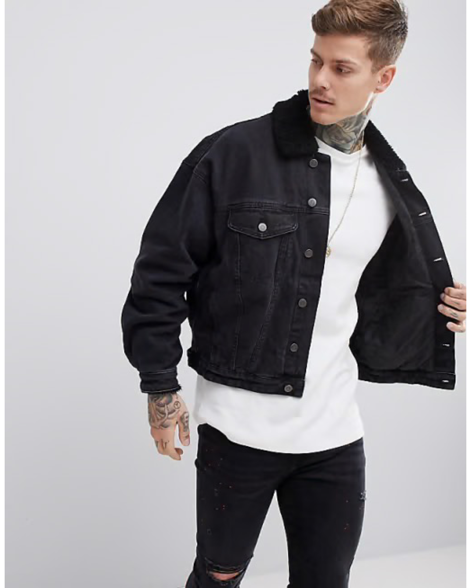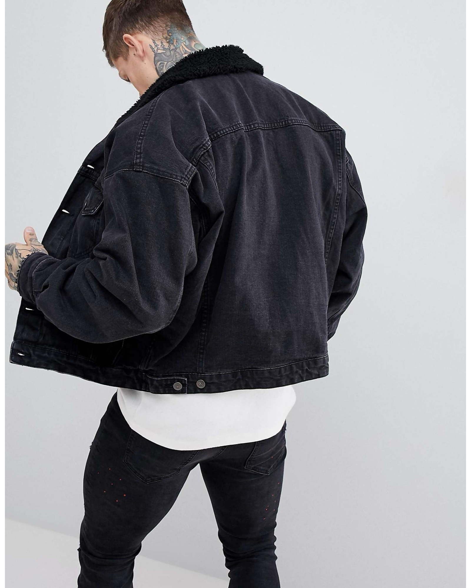 Model: 1112321 ASOS Design Oversized denim jacket with borg collar in washed blask