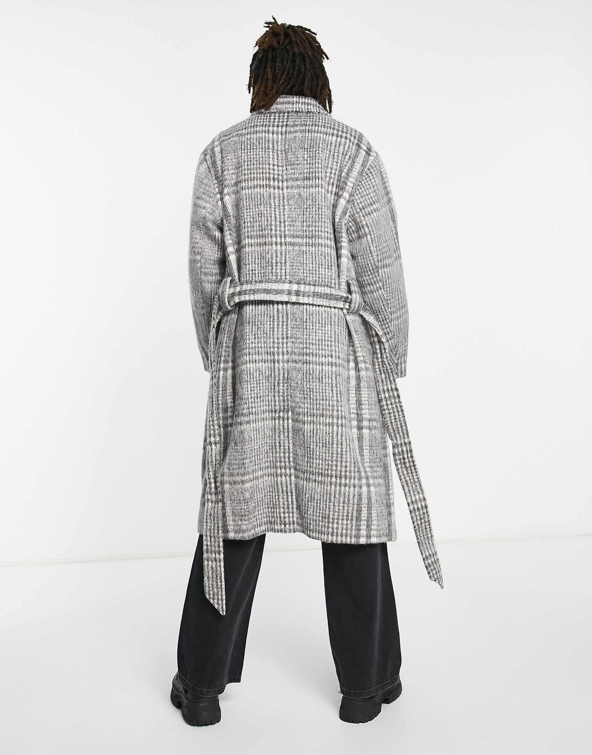 Model: ASOS DESIGN oversized belted overcoat in grey check 103643695